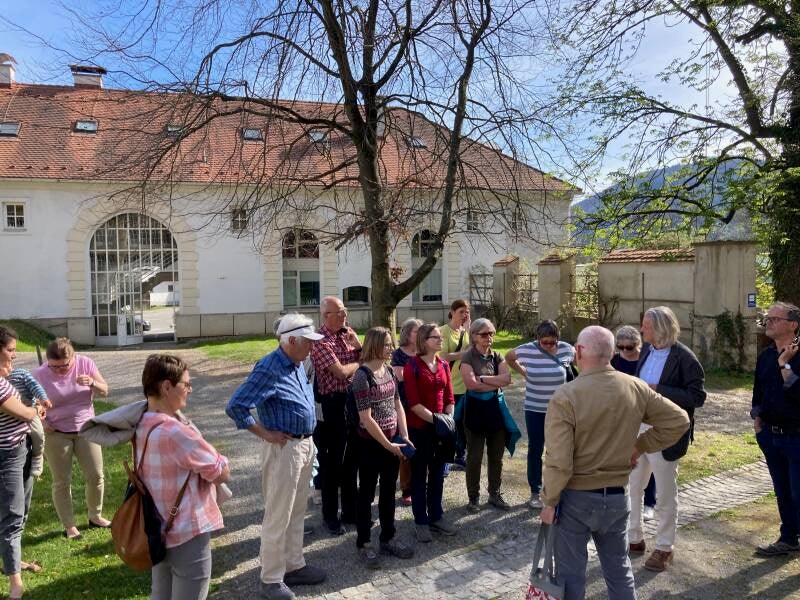 Bei dieser Führung bekamen wir nicht nur interessante Einblicke in das Areal von Schloss St. Gotthard, sondern auch in das Wirken der Familie Dennig in Andritz: Von den Heimgärten über den Steinbruch, die ehemalige Reithalle bis zur Rinderzucht. Übrigens, das Angus Rindfleisch wird direkt ab (Schloss)Hof verkauft. Informationen über Produktpalette und Preisliste gibt es auf der website https://dennigangus.at/.